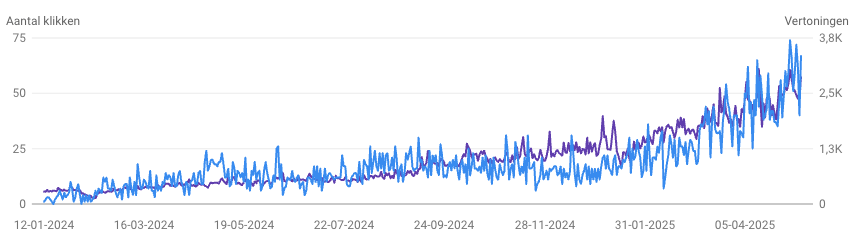 Door middel van een continu proces in het verbeteren van de SEO door middel van het implementeren van de juiste zoekwoorden, het schrijven van blogs en SEO teksten, het optimaliseren van pagina's en beperkte linkbuilding is de organische vindbaarheid drastisch verbeterd.