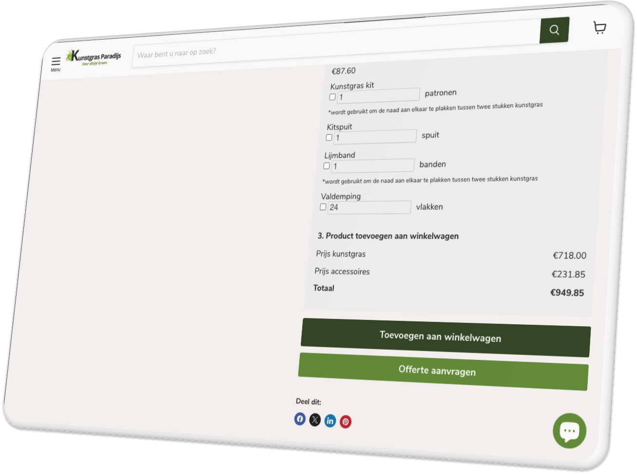 Ons team heeft nauw samengewerkt met Kunstgras Paradijs om hun specifieke behoeften te begrijpen en zo de perfecte Shopify prijscalculator te ontwikkelen.