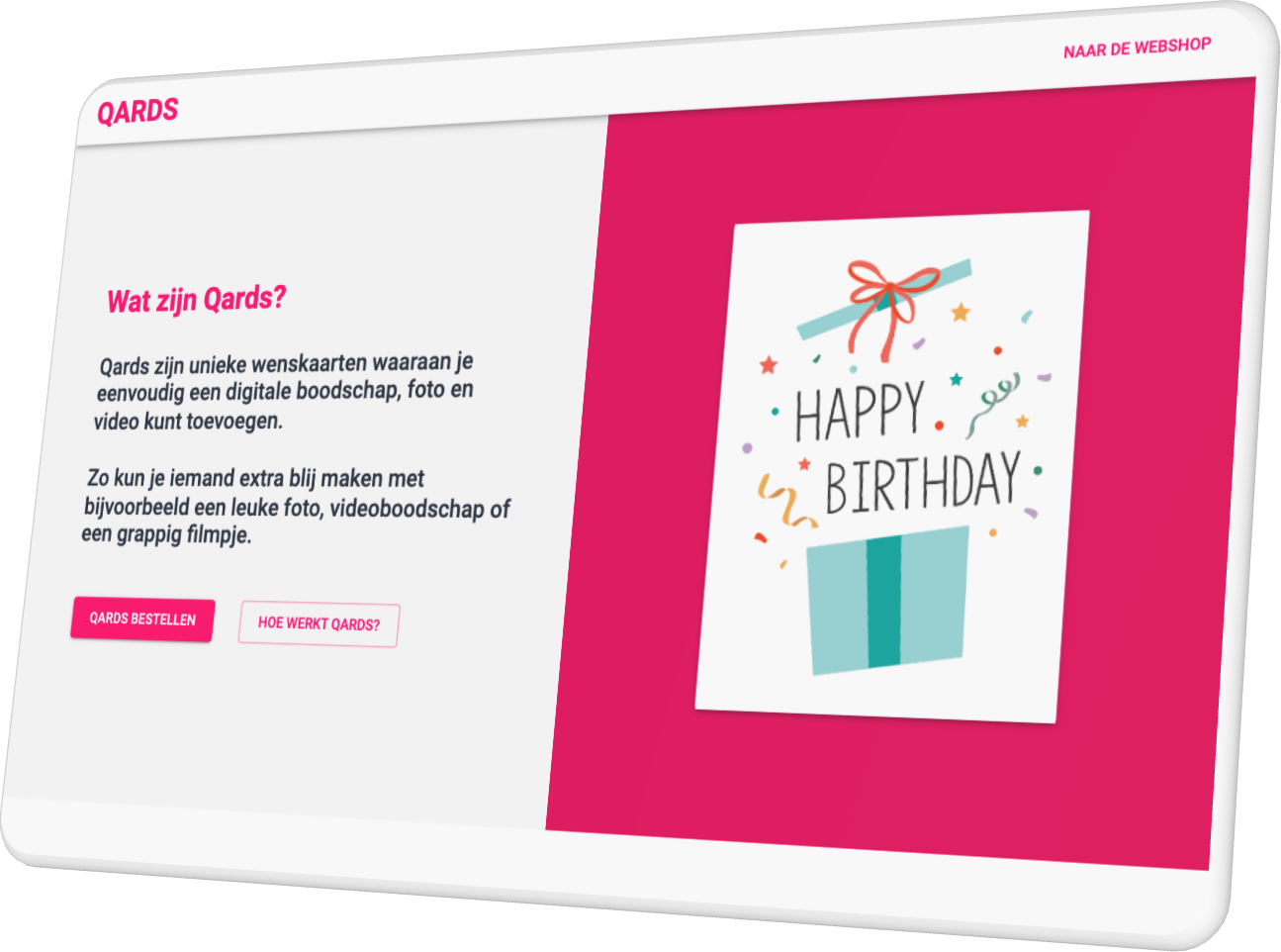 Qards wenskaarten biedt écht unieke wenskaarten waaraan middels een QR-code foto’s, filmpjes en digitale cadeaukaarten aan een fysieke wenskaart kunnen worden toegevoegd.